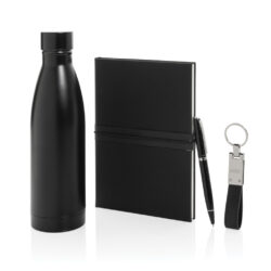 Need to capture your ideas on the go? The set also includes a sleek business ballpoint pen with an 1000 metre writing capacity, paired with a soft-touch notebook made from recycled polyester PU. Inside, you’ll find 160 cream-coloured pages made from recycled paper—perfect for jotting down notes, ideas, or to-do lists.